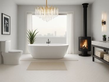 This bathroom represents the heart of what Ashera Vale™ creates: luxury interiors that function both on and off the grid without sacrificing beauty or comfort. Our off grid capable bathrooms are designed with non toxic materials, composting or low water toilet options, gravity fed or pressure adjustable plumbing, propane or wood stove heating possibilities, and air systems that remain safe during power outages. Every element is chosen to reduce chemical exposure, increase independence, and ensure your home remains fully functional no matter the circumstance.